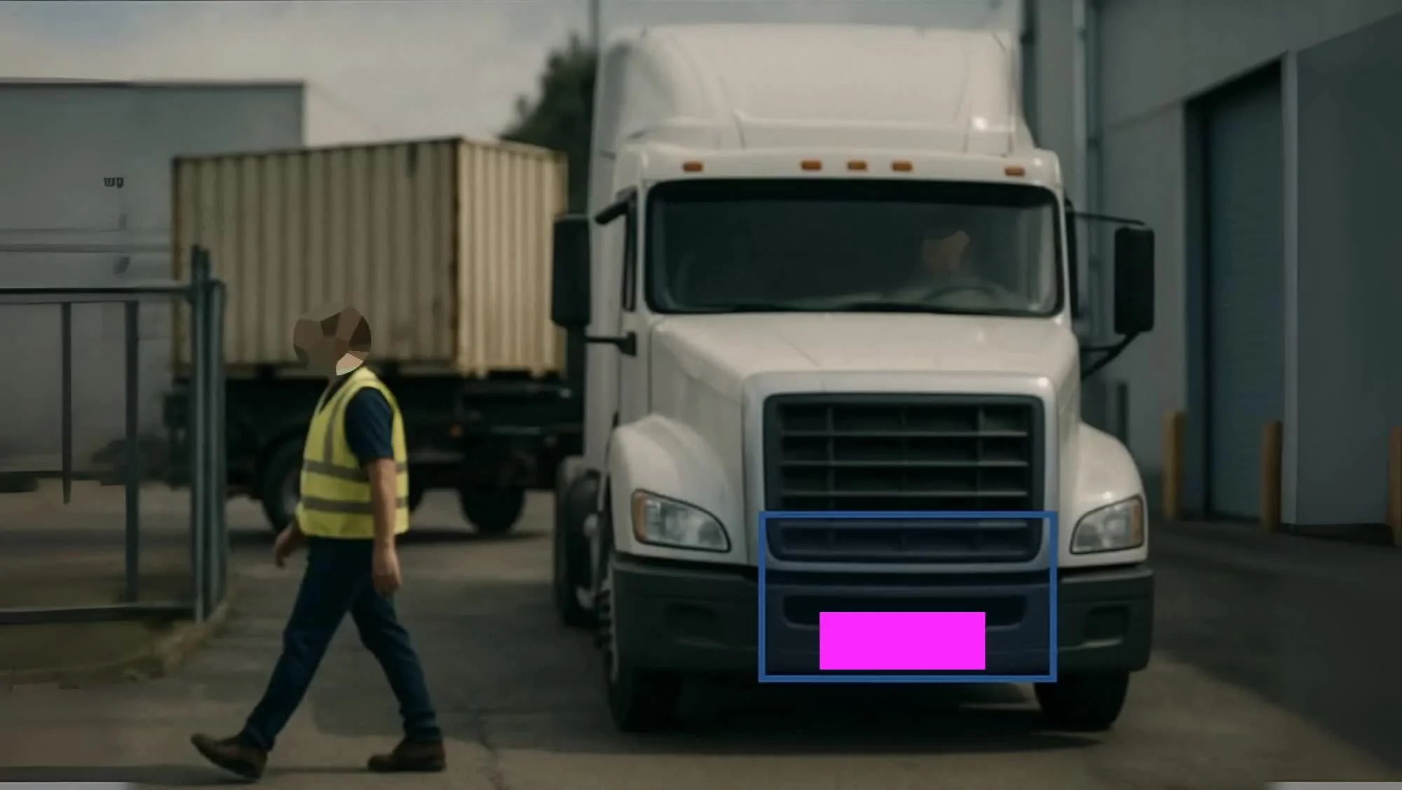Redact driver faces, license plates, or cargo IDs in dashcam, CCTV, and yard footage